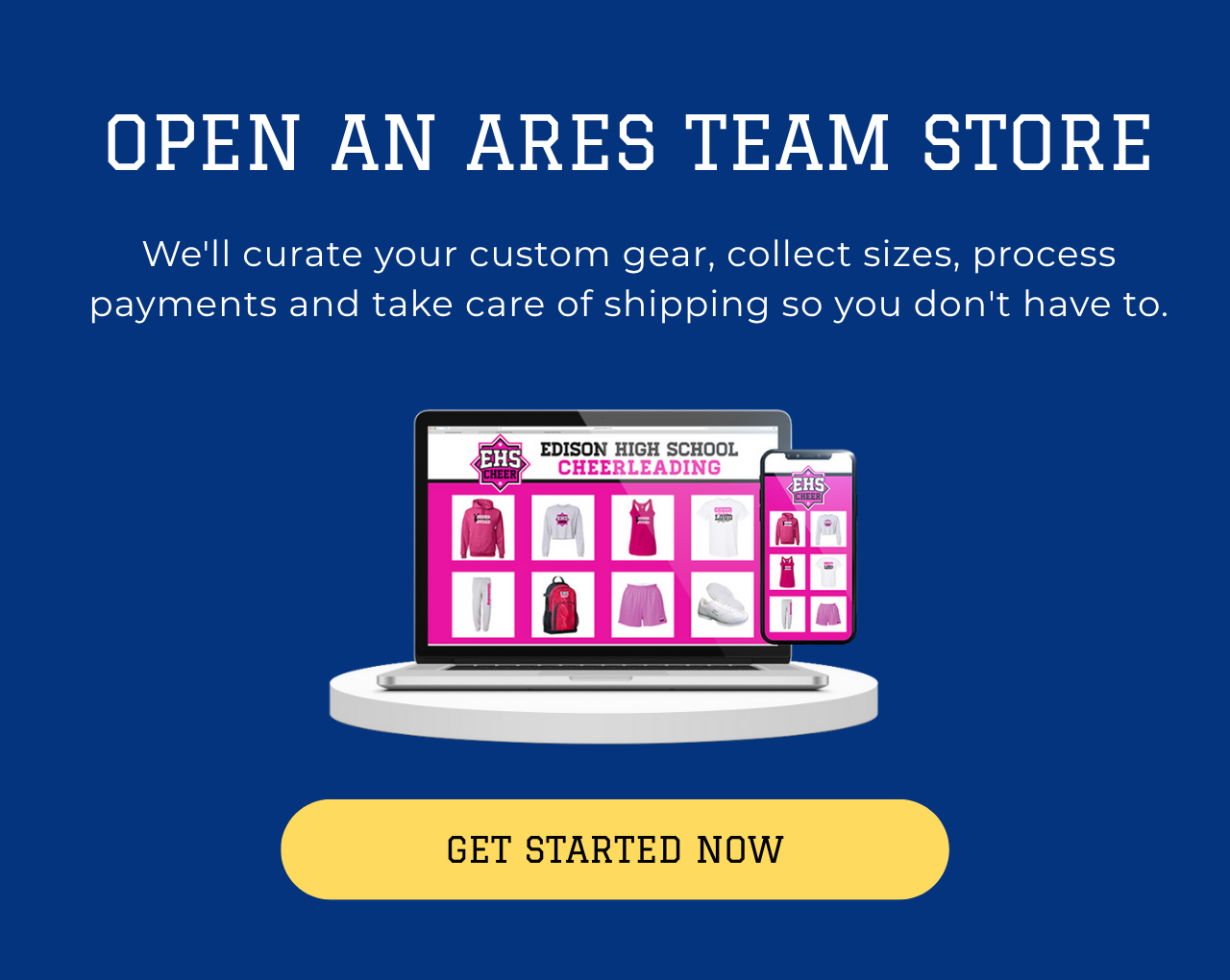 Choose any customizable product from our extensive selection of high quality brands, or open an Ares Team Store to have us curate your products for you.